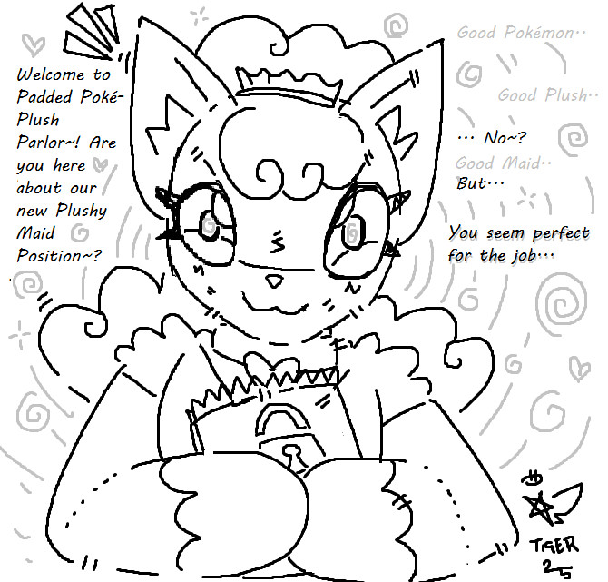 Dialogue from the Alolan Vulpix reads: Welcome to the Padded Poke-Plush Parlor! Are you here about our new Plushy Maid Position~? ... No~? But... You seem perfect for the job..."