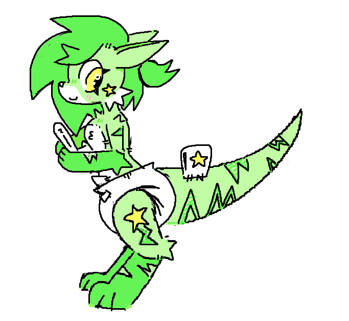 A picture of Tiger, as a plushie Kangaroo. She is holding a diaper in her fores, and has a simple smiling expression looking back at her tail.